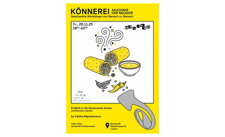 Wir tauchen ein in die farbenfrohe Welt asiatischer Gewürze und entdecken ihre intensiven Aromen und Geschmäcker. Wir lernen, wie wir zuhause unsere ganz persönliche Gewürzmischung herstellen können. Gemeinsam bereiten wir Murukku zu – ein köstliches Apéro aus Sri Lanka und Indien.