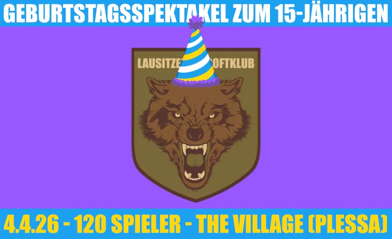 Wir feiern wieder unser Teamjubiläum und ihr könnt mit uns erneut ein geiles Airsoft-Party-Wochenende im The Village zelebrieren!