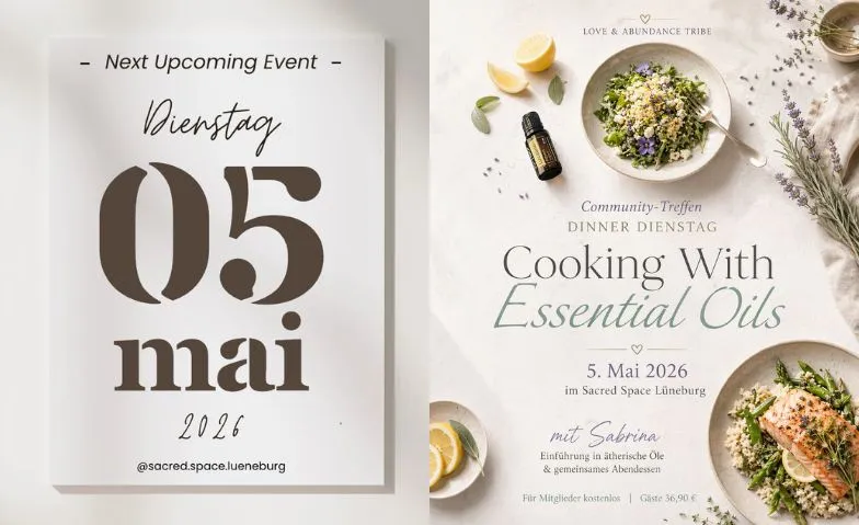 Am 5. Mai 2026 öffnen wir den Sacred Space für einen besonderen Abend rund um das Kochen mit ätherischen Ölen.