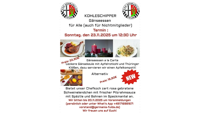 GänseEssen Sonntag 23.11.2025 12:30Uhr