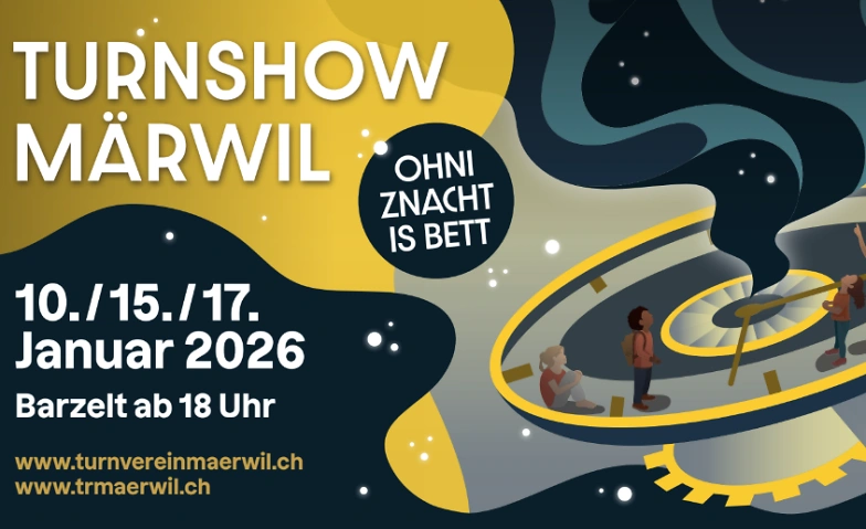 Wir laden Sie ganz herzlich zu unserer Turnshow "Ohni Znacht is Bett" in die Turnhalle Märwil ein. Am Samstag, 17. Januar, um 13.00 Uhr findet die Nachmittagsvorstellung statt. Eintritt ab 18 Jahren 5.- pro Person / unter 18 Jahren kostenlos.