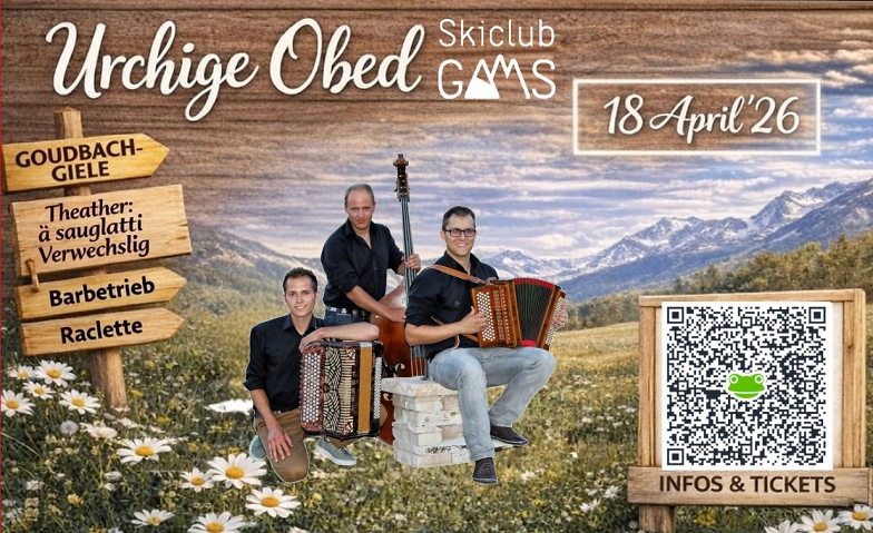 Der Skiclub Gams lädt zu einem geselligen Raclette-Plausch à discrétion ein. Freuen Sie sich auf stimmungsvolle Live-Musik mit den Goudbach-Giele, eine einladende Bar und als besonderes Highlight das Theater 'ä sauglatti Verwechslig'. Ein Abend, den Sie nicht verpassen sollten!