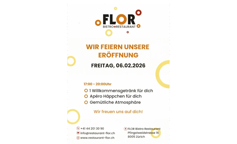 Wir feiern unsere Eröffnung Flor Bistro Restaurant, Pfingstweidstrasse 16, 8005 Zürich Tickets