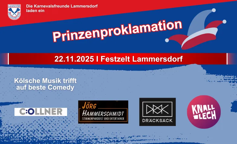 Am 22. November 2025 heißt es wieder: „Laimisch Alaaf!“ – die Karnevalsfreunde Lammersdorf laden zur großen Prinzenproklamation ins Festzelt Lammersdorf ein.