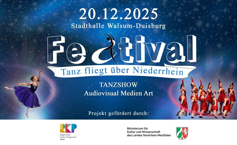 Das Festival "Tanz fliegt über Niederrhein" präsentiert darstellende Kunst im Tandem mit innovativen Medien Art Formaten und schafft zeitgenössischer Ästhetik auf höchsten Niveau. Das Projekt präsentiert eine breite Palette von Tanzkunst auf innovative Weise und verbindet eine Vielzahl von Amateur-Tanzschulen und professionellen Künstlern auf einer Bühne.
