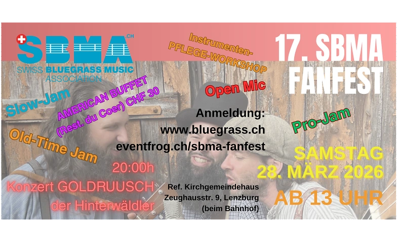 Wer Bluegrass liebt – oder es einfach mal kennenlernen möchte – kommt an das 17. SBMA FanFest, organisiert von der Swiss Bluegrass Music Association (SBMA). Im Mittelpunkt: das, was Bluegrass von Anfang an ausmacht – gemeinsames, spontanes Musizieren, also Jamming.