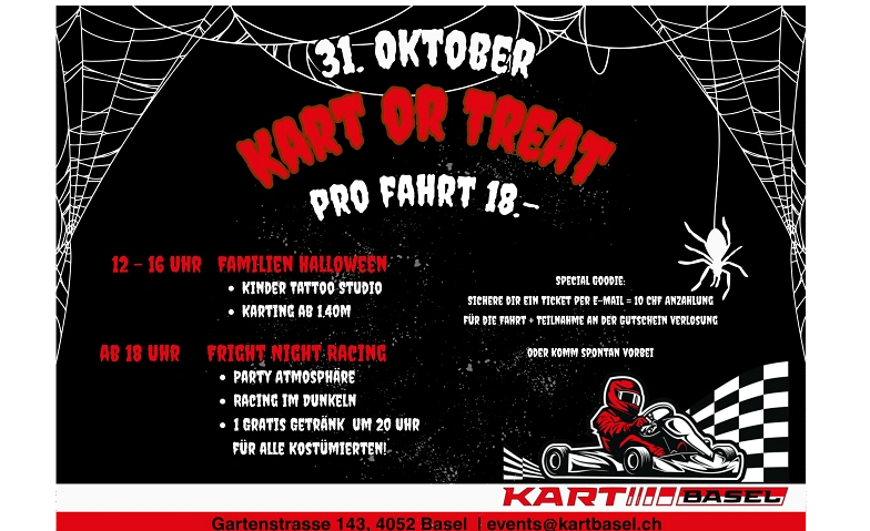 Kart or Treat - Halloween auf der Kartbahn Kart Basel, Gartenstrasse 143, 4002 Basel Tickets
