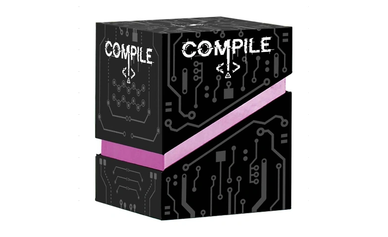 Zwei künstliche Intelligenzen treten im Duell gegeneinander an. Es gilt, Befehlskarten auszuspielen und die Kontrolle zu übernehmen. In dem algorithmischen Kartenspiel Compile schlüpfen zwei Spielende in die Rolle rivalisierender KIs und versuchen die Kontrolle über Befehlsspalten zu erlangen und ihre Protokolle vor der anderen Person zu kompilieren.