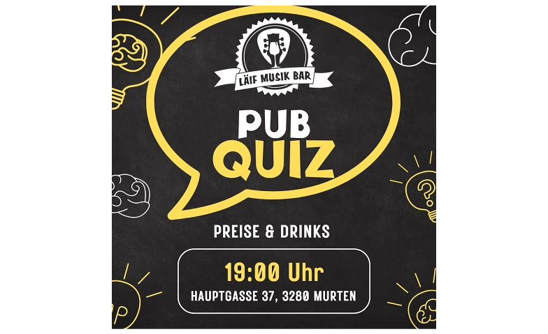 Die Läif Musik Bar in Murten lädt zu ihrem beliebten Pub Quiz ein. Ihr werdet in fünf verschiedenen Kategorien auf die Probe gestellt. Kategorien können sein: