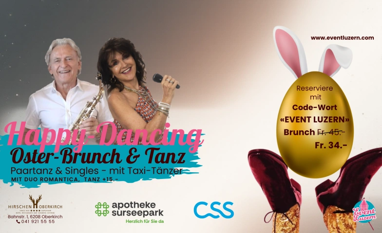 Ostersonntag findet unser „Happy Dancing“-Event im Hotel Hirschen Oberkirch statt mit der beliebten Liveband