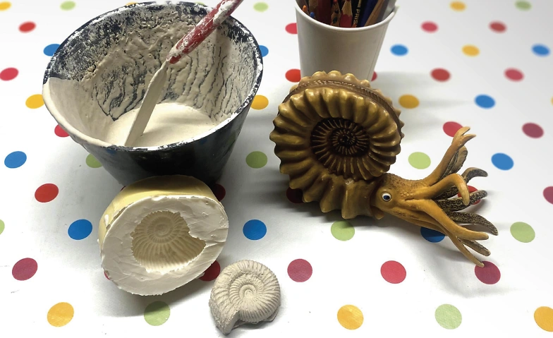 Wir werden die Ammoniten genau unter die Lupe nehmen, ihre Verwandtschaft mit anderen Meeresbewohnern erforschen und sogar echte Ammoniten in die Hand nehmen können. Am Ende des Workshops kannst du einen selbst hergestellten Fossilienabguss mit nach Hause nehmen.