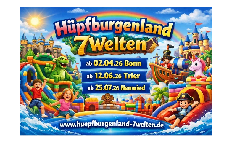 Das Hüpfburgenland 7Welten, eines der beliebtesten mobilen Familien-Freizeitkonzepte in Deutschland, startet 2026 mit einem deutlichen Ausbau seines Angebots. Besucherinnen und Besucher dürfen sich auf noch mehr Attraktionen, neue Themenwelten und zusätzliche Actionmodule freuen,