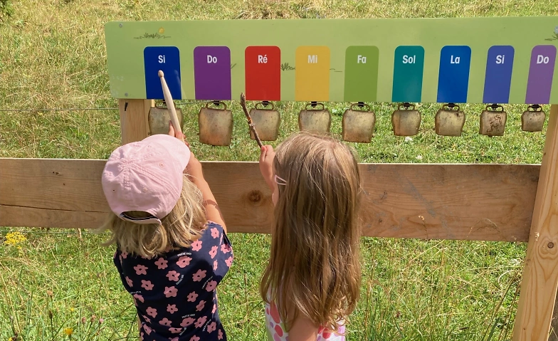 Die Kinder können Kuh-Kalb-Stier-Polo spielen und lernen so, was Mutterkühe hauptsächlich fressen. Oder sie reiten auf einem Steckenkalb und führen das Kälbli zu seiner Mutter. Retten Sie Leben und werfen Sie die Aludosen in den Abfalleimer. Wer von der Familie ist der beste Schütze? Warum gibt es Kühe mit Kuhglocken? Erfahren Sie wieso und spielen Sie ein Lied mit den Glocken. Wie verhalte ich mich beim Wandern gegenüber Kühen und Kälbern? Es gibt noch einige weitere Spiele zu entdecken.