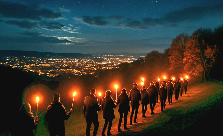 Dann kommt mit mir auf eine besondere Fackelwanderung über den Hügeln von St. Gallen.