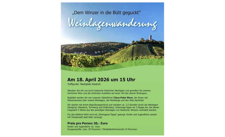 Weinlagenwanderung in Kiedrich Marktplatz (Rathaus), Marktstraße 28, 65399 Kiedrich Tickets