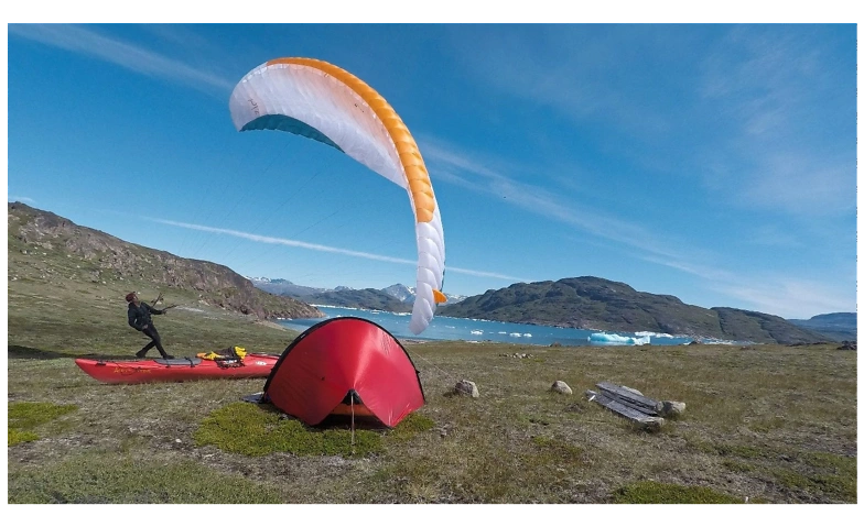 Mit dabei: Ein Zelt, eine Angel, eine Kamera und regelmäßig zu wenige Lebensmittel. Komm mit und erlebe die spektakulären Berge und Fjorde auch aus der Luft bei einem Biwakflug mit dem Gleitschirm. Thermik und Aufwind finden sich an den steilen Felswänden im Tasermiutfjord.