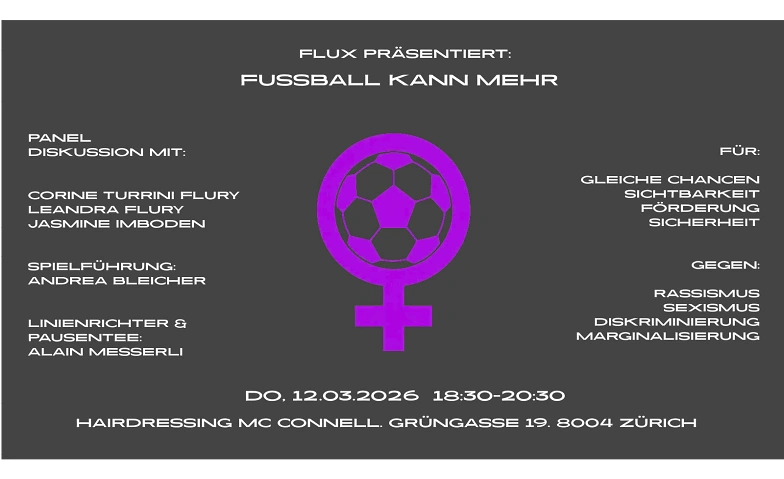 Panel: Frauenfussball "Fussball kann mehr" Hairdressing McConnell, Grüngasse 19, 8004 Zürich Tickets