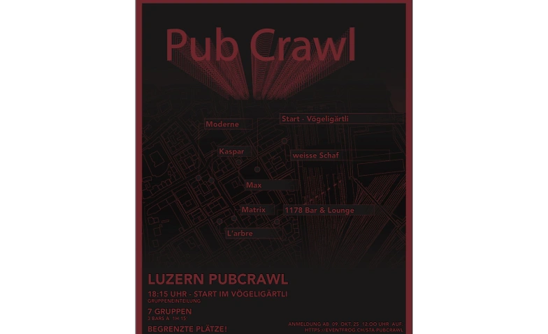 Am 16.10.2025 startet der legendäre Luzerner Pub-Crawl vom STA! In 7 Gruppen mit je 25 Personen ziehen wir durch die besten Bars der Stadt. Die Teilnehmerzahl ist limitiert – sichere dir dein Ticket, bevor es ausverkauft ist!