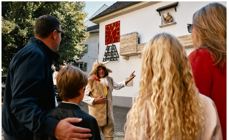 Der listige Schneider im Geissenkostüm nimmt Familien mit Kindern und Schulklassen mit auf eine Stadtführung quer durch Rheinfelden.