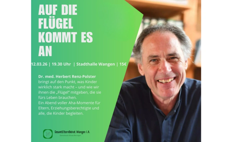 Wir, der Gesamtelternbeirat der Kindertagesstätten Wangen im Allgäu (GEBK), freuen uns sehr, dass wir Herrn Dr. med. Herbert Renz-Polster für einen Vortrag gewinnen konnten. Dazu laden wir am 12.03.2026 alle Eltern, pädagogischen Fachkräfte und Interessierte herzlich in die Stadthalle Wangen ein.