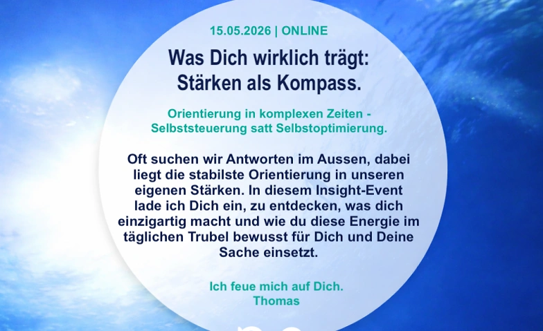 Oft suchen wir Antworten im Aussen, dabei liegt die stabilste Orientierung in unseren eigenen Stärken. In diesem Insight-Event lade ich dich ein, zu entdecken, was dich einzigartig macht und wie du diese Energie im täglichen Trubel bewusst für dich und deine Sache einsetzt.