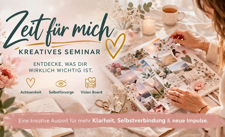 In diesem inspirierenden Seminar entdecken die Teilnehmer, wie sie im Alltag wieder mehr bei sich selbst ankommen können. Durch eine kreative 5-Sinne-Übung, die Gestaltung des idealen Tages und das Erstellen eines persönlichen Vision Boards wird sichtbar, was wirklich wichtig ist und welche Wünsche gelebt werden möchten.