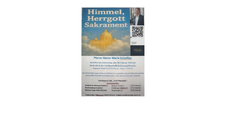 Gesprächsabend mit Pfarrer Rainer Maria Schießler Schulturnhalle Hörstein, Ringmauerstraße 10, 63755 Alzenau Tickets