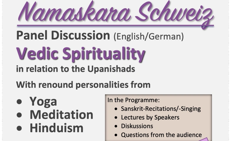 "Im Namen meines verehrten Sanskritlehrers Prof. Dr. Jaydev Jani, einem profunden Kenner der vedischen Schriften, den wir bei unserer letzten Podiums-Gesprächsreihe bei uns hatten, lade ich Sie herzlich ein, am Podiumsgespräch am Sonntagnachmittag, 14. Dezember 2025 teilzunehmen. Namhafte Kenner der indischen Spiritualität aus den Bereichen Yoga, Meditation und Hinduismus werden als Referenten zugegen sein und auch Fragen aus dem Publikum beantworten."