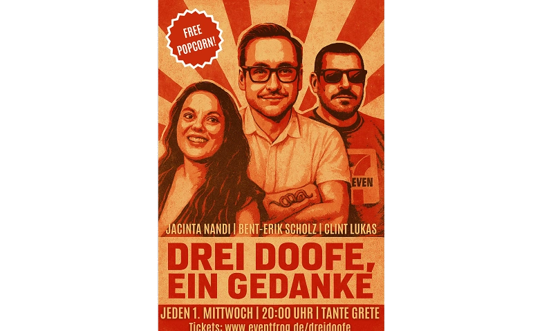 Drei Doofe, ein Gedanke Tickets Drei Doofe, ein Gedanke Mittwoch, 07.01.2026, 20:00 Uhr Tante Grete, 10437 Berlin, DE Tickets