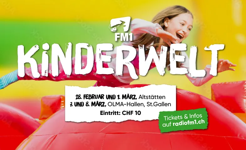 FM1 Kinderwelt Altstätten Sonntag Tickets FM1 Kinderwelt Altstätten Sonntag Sonntag, 01.03.2026, 10:00 Uhr Schöntalhalle, 9450 Altstätten, CH Tickets