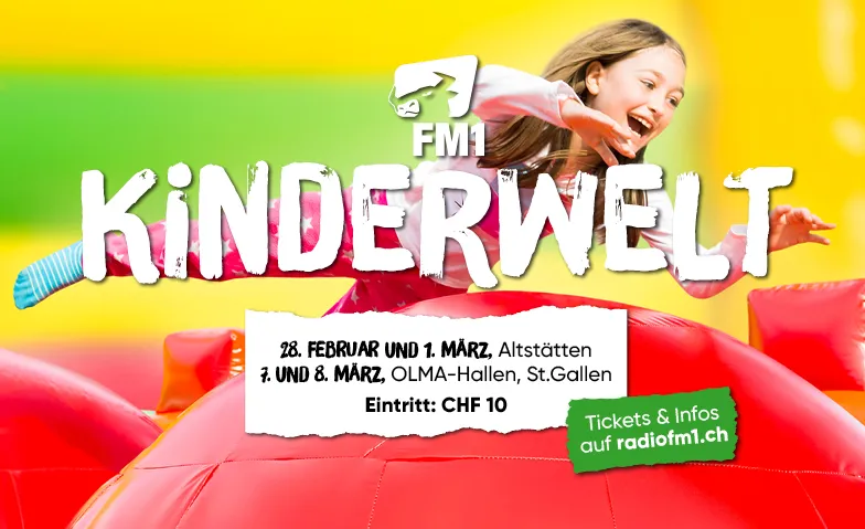 FM1 Kinderwelt Altstätten Sonntag | Sonntag, 01.03.2026, 10:00 Uhr | Schöntalhalle, 9450 Altstätten, CH | Tickets | |