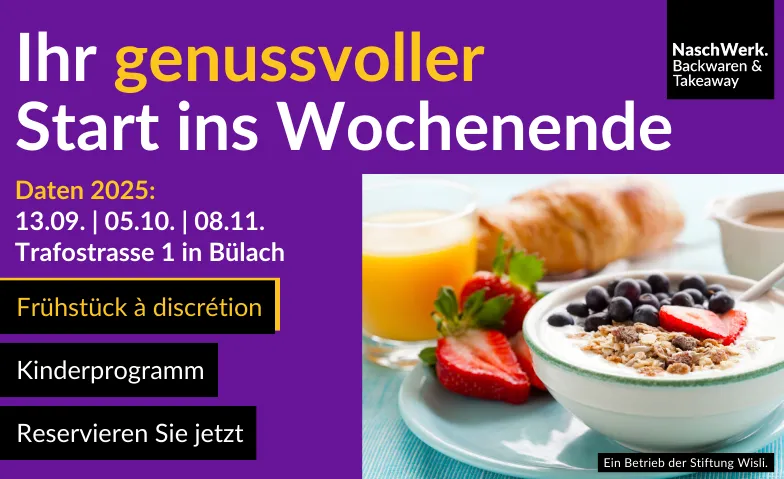 Frühstück à discrétion - 8.11.2025 Tickets Frühstück à discrétion - 8.11.2025 Samstag, 08.11.2025, 09:00 Uhr Wisli Campus, 8180 Bülach, CH Tickets