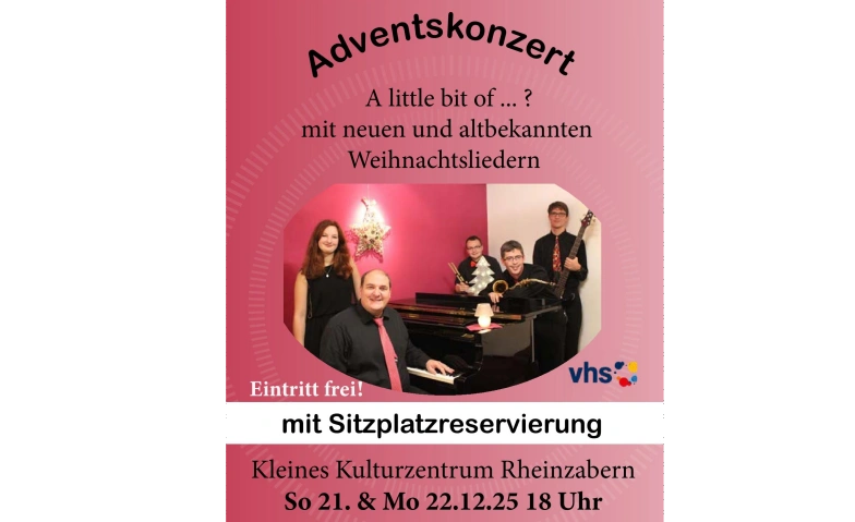 Weihnachtskonzert - A little bit of ...? - Rheinzabern | Montag, 22.12.2025, 18:00 Uhr | Kleines Kulturzentrum Rheinzabern, 76764 Rheinzabern, DE | Tickets |