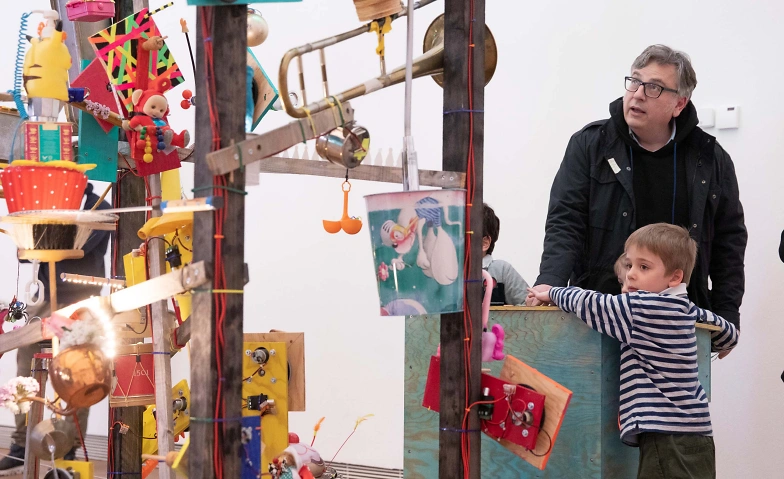 Erschaffe mit den Künstlern Felix Fisgus und Niklas Roy das Gemeinschaftswerk Optomat - inmitten von Jean Tinguelys Maschinen. Inspiriert von dessen Witz erforschst du, wie man mit einfacher Mechanik, funkelndem Krimskrams und Bewegung optische Effekte erzeugen kann. Davon wird es am Ende eine ganze Maschine voll geben. Diese wird künftig zum Bedienen, Ausprobieren und in Dialog treten im Museum stehen. Daher: Freude am Basteln ein Muss, handwerkliches Geschick ein Plus, Tüfteln gefragt, Scheitern erlaubt.
