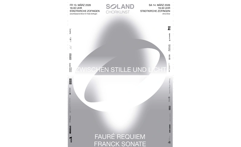 Zwischen Stille und Licht - SOLAND Chorkunst Tickets Zwischen Stille und Licht - SOLAND Chorkunst Freitag, 13.03.2026, 18:00 Uhr Stadtkirche Zofingen, 4800 Zofingen, CH Tickets