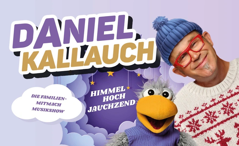 „Himmelhochjauchzend“ ist keine gewöhnliche Adventsshow – es ist ein Fest voller Freude, Musik und Herz. Daniel Kallauch begeistert Kinder und Erwachsene mit rockigen Melodien, witzigen Puppenspieleinlagen und Momenten, die zum Staunen bringen. Gemeinsam wird gelacht, getanzt und gesungen, während Spaßvogel Willibald mit seiner frechen Art das Publikum verzaubert. Kallauch schafft es, das Wunder von Weihnachten lebendig und spürbar zu machen – modern, nahbar und voller Lebensfreude.