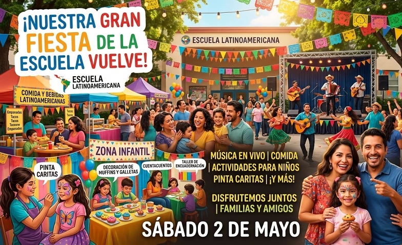 Queridas familias de la Escuela Latinoamericana, ¡vuelve nuestra esperada gran fiesta anual! Les invitamos a compartir una tarde llena de alegría, música en vivo y deliciosos sabores en los stands de comida.