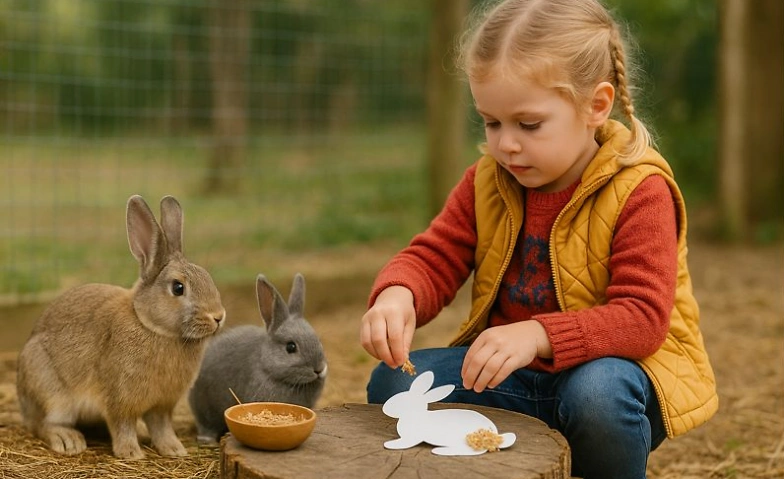 🐰 Montag – Hasen: Hasengehege besuchen, Winterfutter herstellen, Hasen-Bastelwerkstatt & Zopfbrot backen