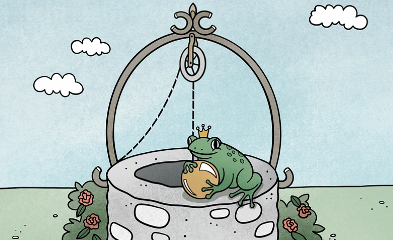 Die hübsche, junge Prinzessin spielt im Schlossgarten mit ihrer goldenen Kugel, die ihr plötzlich aus den Fingern gleitet und in den tiefen Schlossbrunnen fällt. Verzweifelt und bitterlich weinend um den Verlust ihres liebsten Spielzeugs erscheint wie aus dem Nichts ein Frosch an der Wasseroberfläche. Er bietet der Prinzessin an, die Kugel für sie aus dem Brunnen zu holen, aber nur, wenn sie ihn im Gegenzug als gleichwertigen Spielkameraden anerkennt und Tisch und Bett mit ihm teilt. Die Prinzessin willigt ein. Als der Frosch mit der Kugel an die Oberfläche zurückkehrt, schnappt sie sich die Kugel und rennt ins Schloss zurück. Am nächsten Tag klopft es an der Tür des Schlosses; es ist der Frosch, der die Prinzessin an ihr Versprechen erinnern will. Als der König die Geschichte vom Vortag erfährt, befiehlt er seiner Tochter, für ihr Wort einzustehen. Wird die Prinzessin ihr Versprechen halten? Wird aus dem Frosch wirklich ein Prinz?