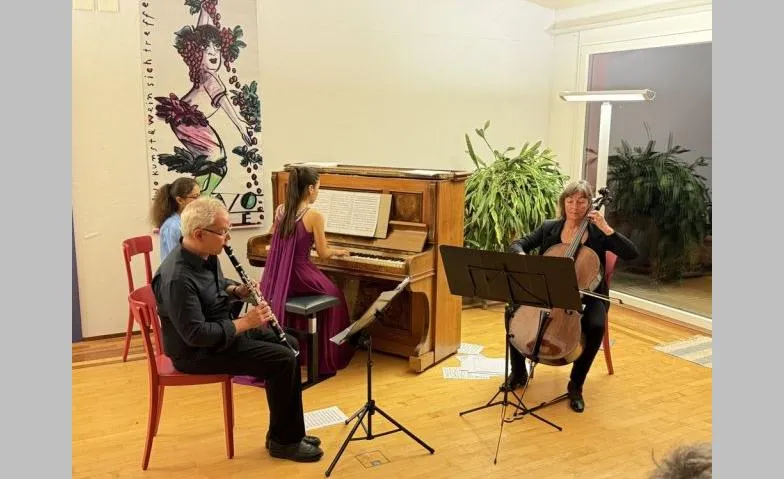 Salon- und Klaviermusik von Bruch, Beethoven, Bach, Chopin, Skrjabin, Kreisler, Strauss, Elgar und aus Lateinamerika! Nach einem Auftakt mit "klassischer" Trio-Musik von Bruch und mit Beethovens "Gassenhauer" bringt die junge Lachner Pianistin Laura Pöpplein einen Teil ihres Soloprogramms zum Erklingen. Es folgt romantisch geprägte Salonmusik mit Schwerpunkt Wien den Abschluss machen heisse südamerikanische Melodien. Programm: Max Bruch: Nr. 1 Andante, aus "8 Stücke für Klarinette, Cello und Klavier op. 83" Ludwig van Beethoven: "Gassenhauer"-Trio op. 11 Allegro con brio - Adagio - Thema und Variationen "Pria ch'io i'impegno" Johann Sebastian Bach: Präludium und Fuge Cis-Dur BWV 848, WTK 1 Frédéric Chopin: Etüde op. 10 Nr. 4 cis-moll Fritz Kreisler: Kleiner Wiener Marsch Johann Strauss Vater: Cachucha-Galopp Edward Elgar: Salut d'amour Ludwig van Beethoven: Sonate Nr. 17 d-moll « Der Sturm » op. 31 Nr. 2 Largo-Allegro - Adagio - Allegretto Alexander Skrjabin: Etüde dis-moll op. 8 Nr. 12 A.G. Villoldo: El Choclo, Tango Pablo Beltran Ruiz: Quien sera - Sway - Zuckersüss, Rumba Apéro nach dem Konzert durch die Besitzerfamilie. Solist: Ruth Müri, Violoncello Urs Bamert, Klarinette Laura Pöpplein, Klavier