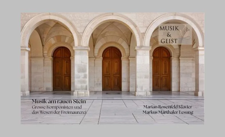 MUSIK & GEIST - philosophische Verbindung von Wort+Klang "Die Musik am rauen Stein" Mit Musik von Liszt, Haydn, Mozart, Beethoven und anderen. MARIAN ROSENFELD, Klavier MARKUS MARTHALER, Lesung "Grosse Komponisten und das Wesen der Freimaurerei" Die Freimaurer: verfemt und verehrt. Das Gedankengut dieser Gemeinschaft hat seit jeher berühmte Komponisten in ihren Bann gezogen. Markus Marthaler und Marian Rosenfeld gehen mit Wort und Klang der Frage nach, ob es gelingt, Werthaltung und schöpferisches Wirken in Einklang zu bringen. Mit Musik von Liszt, Haydn, Mozart, Beethoven und anderen. Marian Rosenfeld ist in der Schweizer Musikwelt seit ihrer Kindheit bekannt. Sie konzertierte in führenden Häusern Europas, u.a. Wien, Salzburg, Prag, Berlin oder London und wurde eingeladen zu Aufnahmen für verschiedene europäische Radio- und Fernsehsender. Ihre künstlerische Aufgabe sieht sie darin, das gesamte Spektrum von geistig-philosophischen und menschlich emotionalen Bereichen in ihre Interpretation zu integrieren. Markus Marthaler lebt und arbeitet in Zürich. Schon immer stand der Mensch im Zentrum seines Interesses. Studien, ausgedehnte Reisen und faszinierende Arbeitsräume führten ihn im Laufe seines Lebens rund um die Welt. In beratender Tätigkeit begleitet er bis heute Führungskräfte...