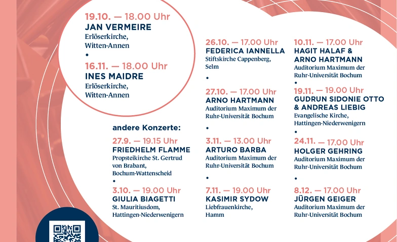 Ab September (27.09. bis 08.12.2025) porträtiert der Freundeskreis zur Förderung der Orgel- und Kammermusik e.V. in der Konzertreihe "Bochumer Orgelpunkte 2025" besondere westfälische Orgeln.