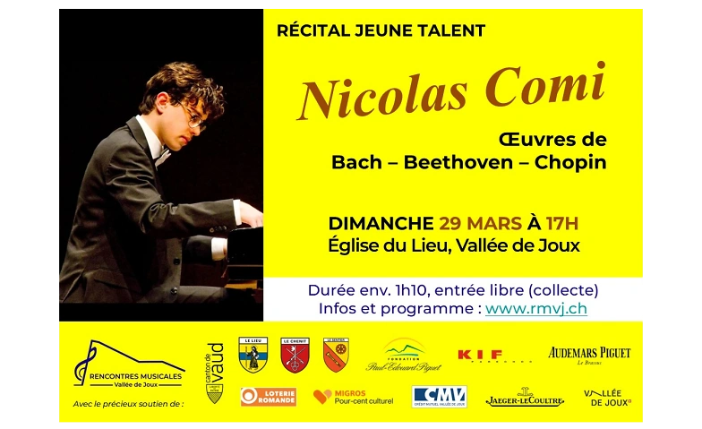 Œuvres de Bach, Beethoven et Chopin avec le pianiste Nicolas Église du Lieu, Grand-Rue 16, 1345 Le Lieu Tickets