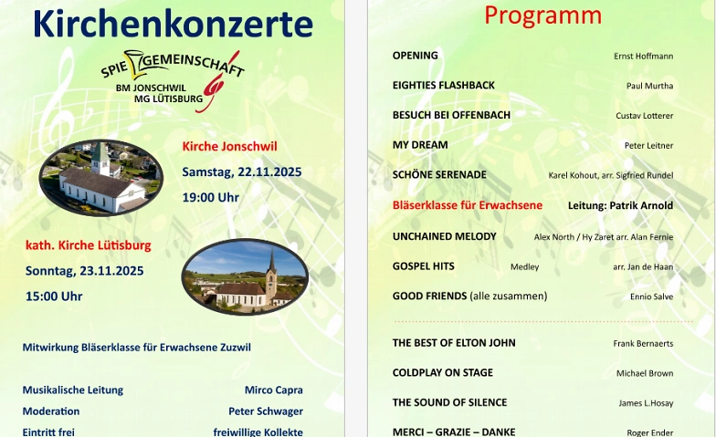 Kirchenkonzert der Spielgemeinschaft Jonschwil-Lütisburg wird organisiert durch: