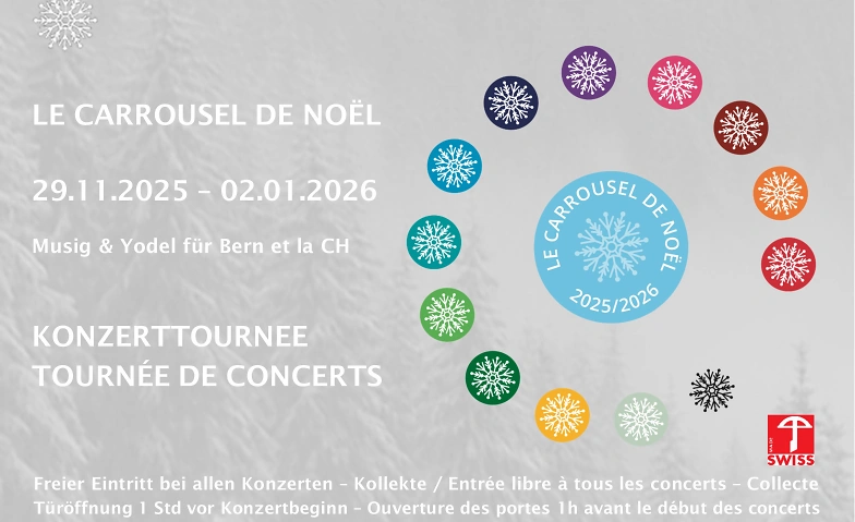 Der, aus dem Traum entstandene Projektchor, LE CARROUSEL-DE-NOËL, verbindet musikalisch die Regionen Bern, Biel/Bienne, Seeland & Berner Jura! Und genau in diesen Regionen wird uns die Konzerttournee an 6 verschiedene Orte führen.