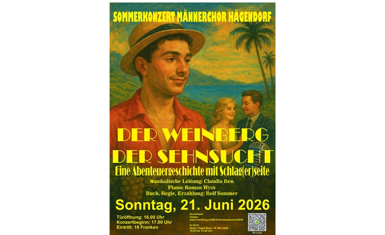 Wir erzählen die aufregende Geschichte von Thomas Duhli aus Hägendorf, der sich nichts sehnlicher wünschte, als eine liebevolle Frau zu heiraten. Besonders die hübsche Vroni hatte es ihm angetan. Doch diese schwärmte voller Inbrunst für den berühmten deutschen Schlagersänger Roland Heiser und liess den armen Thomas links liegen. In seinem Frust besann er sich darauf, dass er schon immer ein Winzer hatte werden wollen. Er verliess Hägendorf und machte sich auf die Suche nach seinem «Weinberg der Sehnsucht». Zuerst am Genfersee, dann wollte er nach Kalifornien. Doch das Schicksal hatte etwas anderes mit ihm vor und verfrachtete ihn per Schiff auf eine nur spärlich bewohnte Insel in der Karibik. Dort, an den sanften Hängen über dem Meer, begann Thomas seine Reben zu züchten. Sein lieblicher Inselwein wurde bald weitherum berühmt und lockte Touristen aus aller Welt an – unter ihnen der berühmte deutsche Schlagersänger Roland Heiser mit seiner Frau Vroni. Und damit begannen sich die Ereignisse zu überschlage(r)n...