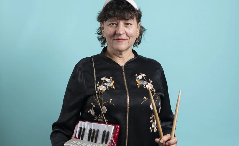 Béatrice Graf: Kofferschlagzeug, Gitarren mit einer Saite, Objekte, Stimme, Spielzeug, Texte