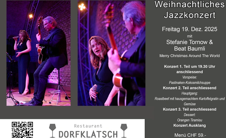 Erleben Sie eine wunderbaren vorweinachtlichen Abend mit 3-Gang Essen und Live Jazz-Musik vom Feinsten.