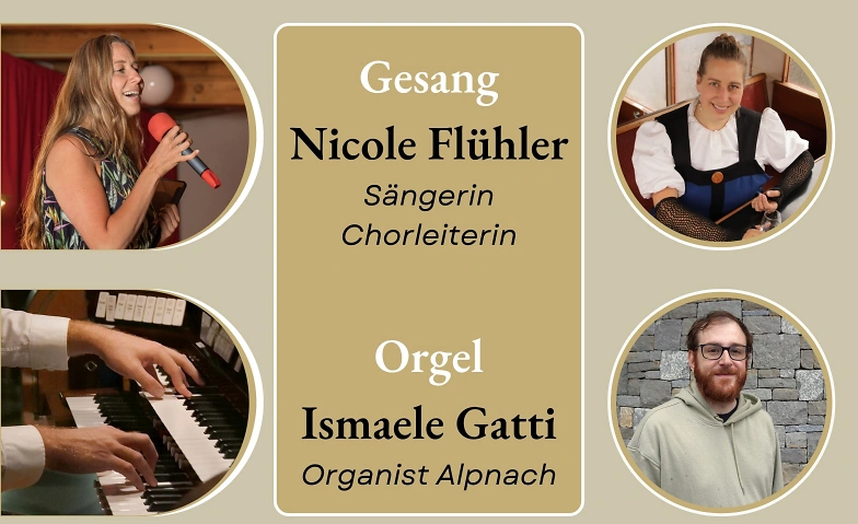 Am Sonntag, 12.Oktober 2025 um 17.00 Uhr (im Anschluss an die Dorfchilbi), findet in unserer Pfarrkirche ein Konzert der anderen Art statt: der renommierte Hauptorganist Ismaele Gatti aus Italien spielt mit der Sängerin und Chorleiterin Nicole Flühler aus Sarnen unteranderem Werke von ABBA, Michael Jackson, Louis Armstrong und Adolf Stähli. Zudem werden sie eigene Werke präsentieren.