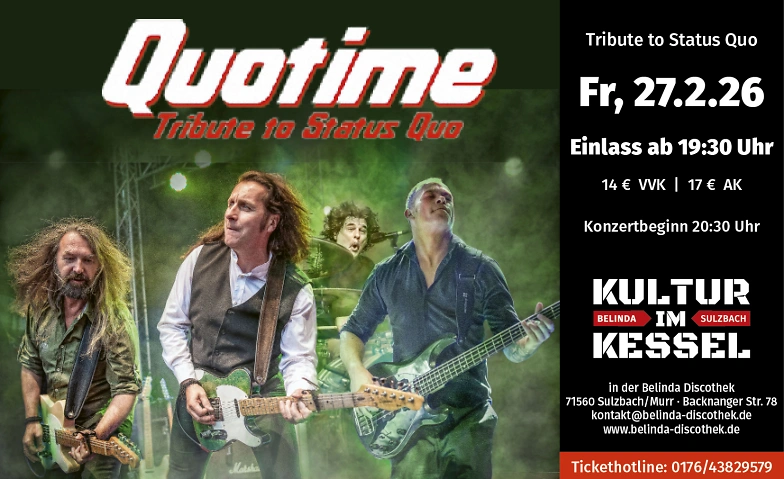 Kultur im Kessel – Quotime – Status Quo Tribute Band Belinda Areal, Backnanger Straße 78, 71560 Sulzbach an der Murr Tickets